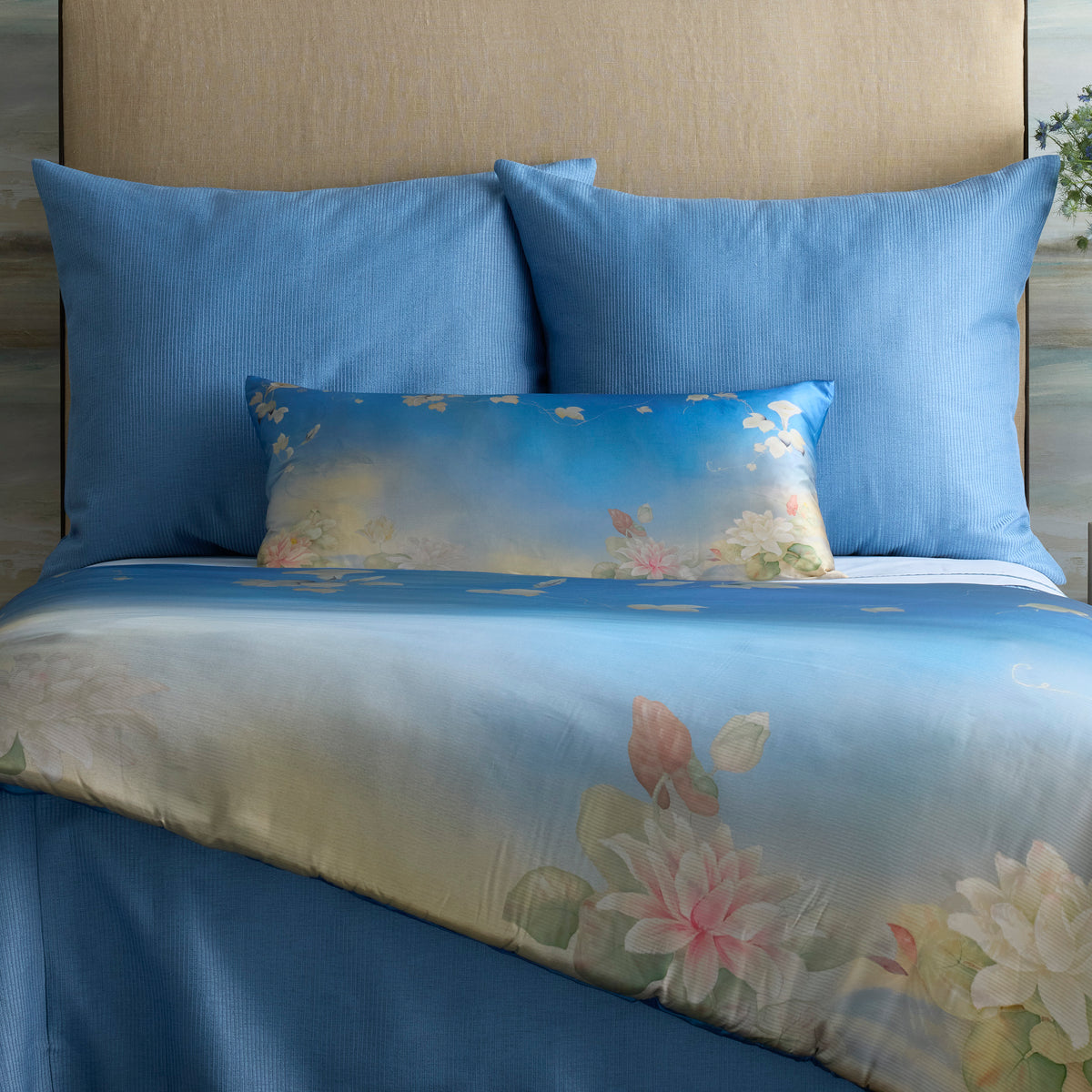 Kinrande is inspired by a Ming dynasty–era bowl in The Met collection. We've adapted the original vessel's decorations into a gold-and-bronze motif embroidered onto a marine-blue linen/cotton ground for pillows, throws, and duvets.